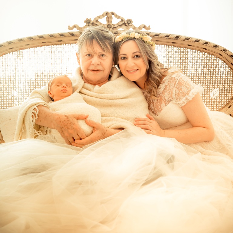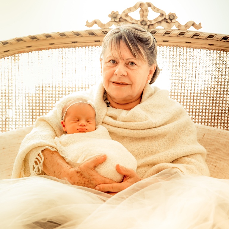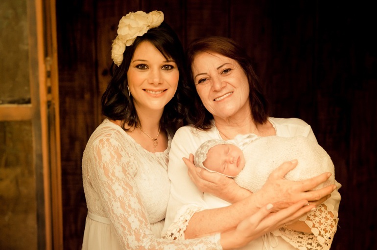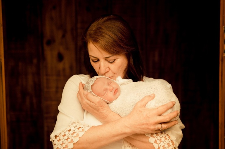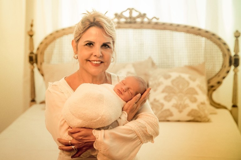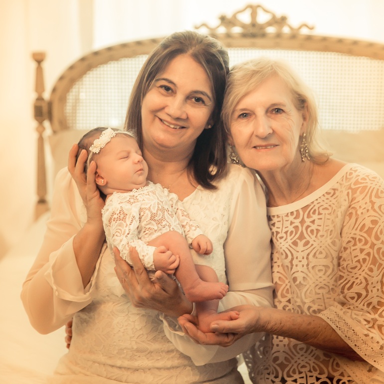 ● O bebê, a mamãe e a vovó ficam bem nas fotos com cenários especiais